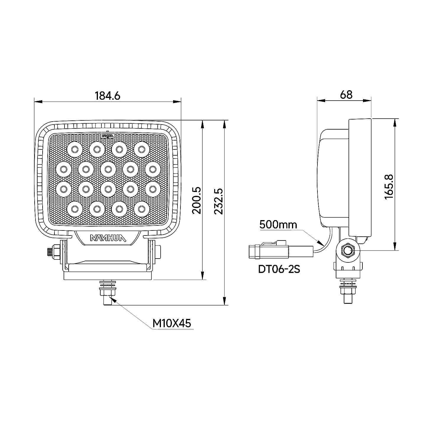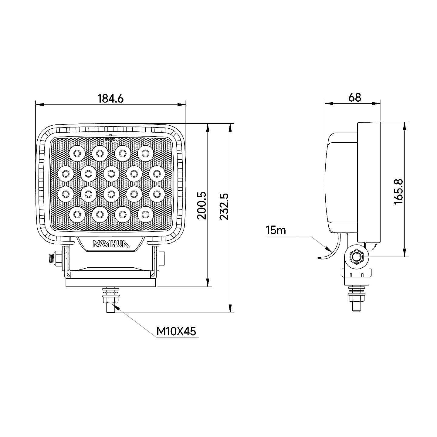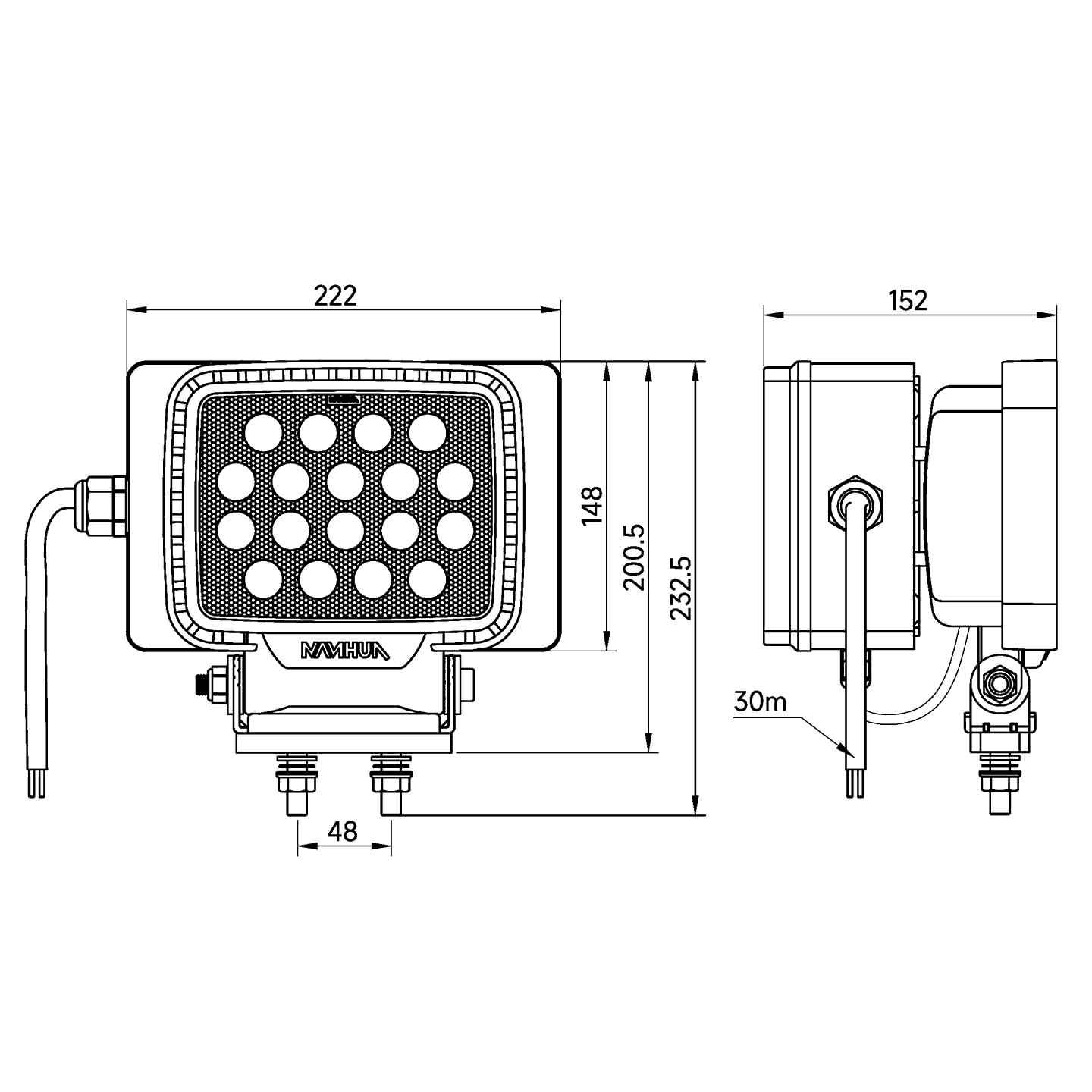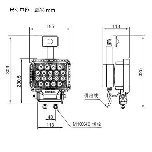 LW22系列LED远光照明灯,采用工程车照明技术,选用品牌大功率LED光源,灯寿命长,运作安全,维护成本低,适用于各种起重机械(轮胎吊,履带吊,行车,等),港机设备(门吊,桥吊, 堆高机等),冶金,化工,矿场,远洋船舶等照明工业场所。 参考标准: IEC 61000/ EN 55015/ DIN40050/ IEC60529/ IEC60598